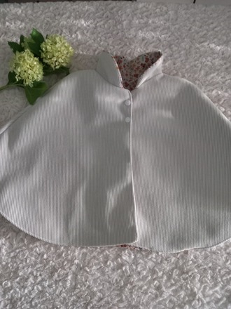 poncho en velours côtelé ecru ,fleuri automnale intérieur ,petit col arrondi ,taille 18/24mois